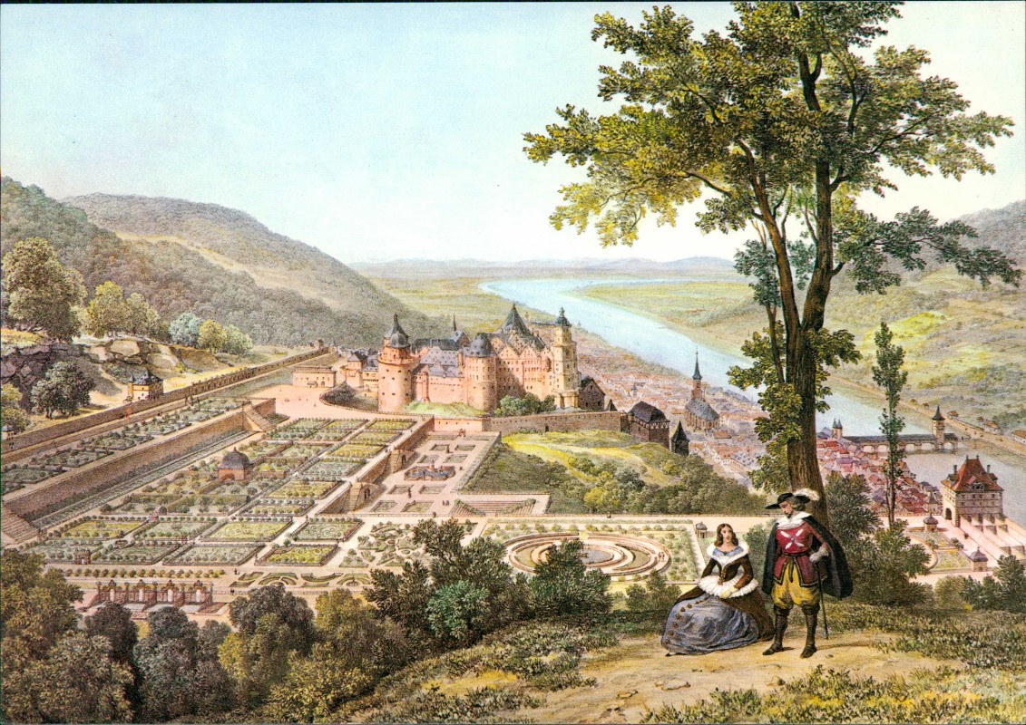 - Umland-Ansicht Hortus Palatinus um 1620 nach Th. Verhas (Künstler)