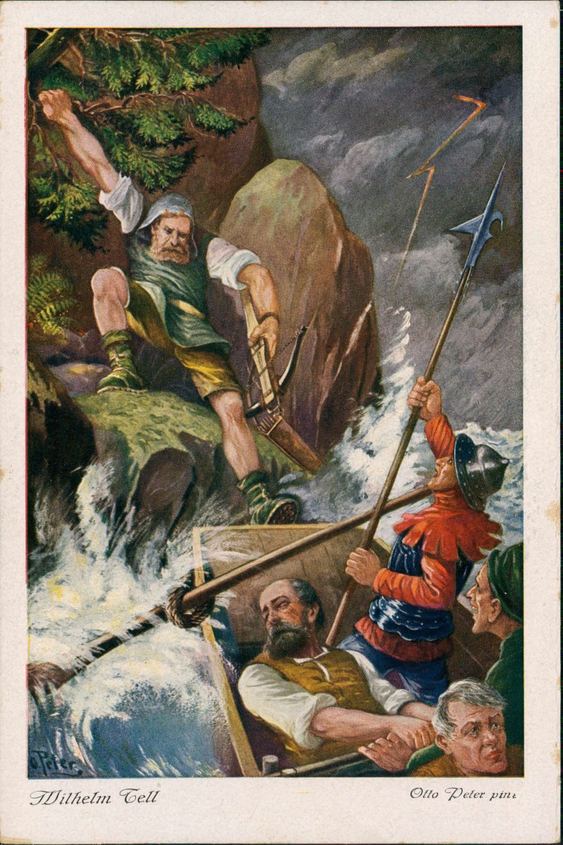 Ansichtskarte: Sagen Tells Flucht Künstlerkarte Otto Peter pinx