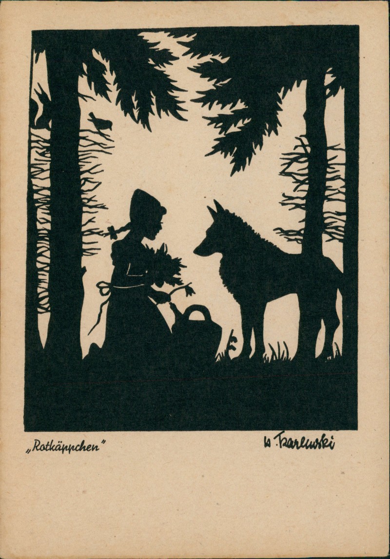 Ansichtskarte: Scherenschnit Märchen Fairy Tale Ratkäppchen Künstlerkarte