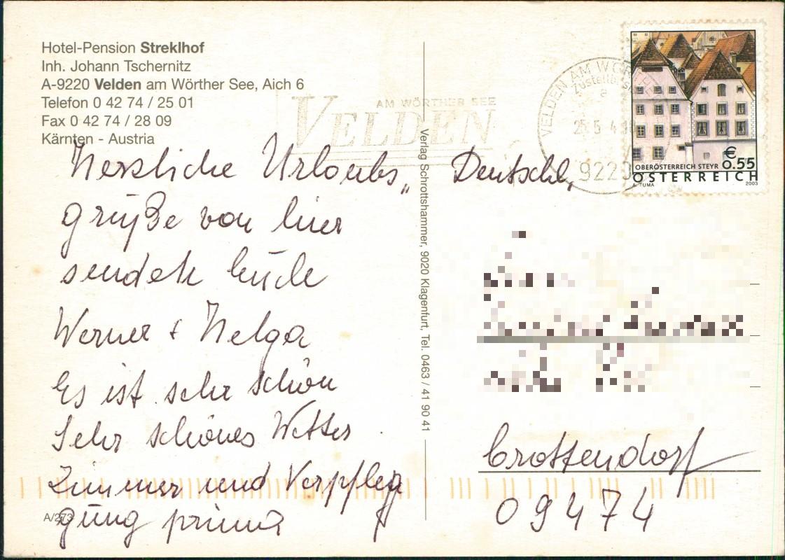 Ansichtskarte: Hotel Pension Strecklhof - Velden am Wörther See