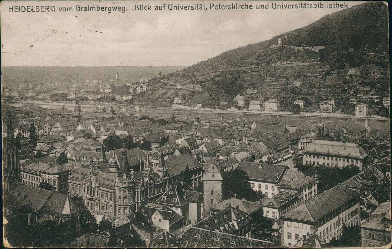 Ansichtskarte: vom Graimbergweg. Blick auf Universität, Peterskirche und Universitätsbibliothek - Heidelberg