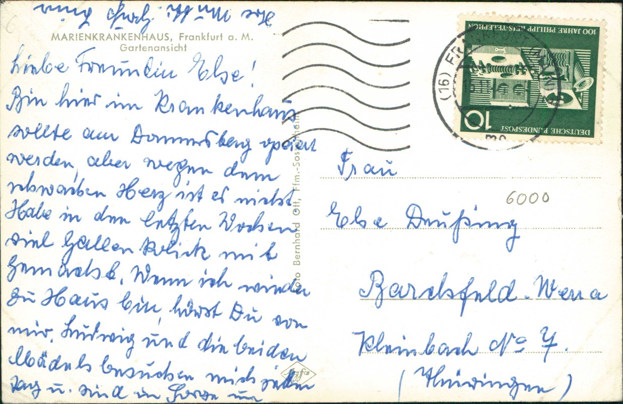 Ansichtskarte: Gartenansicht - Marienkrankenhaus - Frankfurt am Main