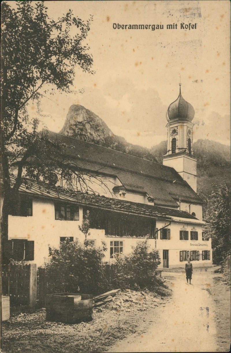 Ansichtskarte: Stadtpartie mit Kirche - Oberammergau