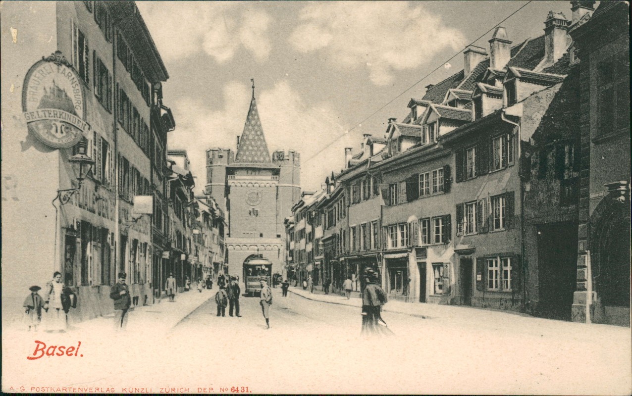 Ansichtskarte: Straße Schild Brauerei Farnsburg - Basel