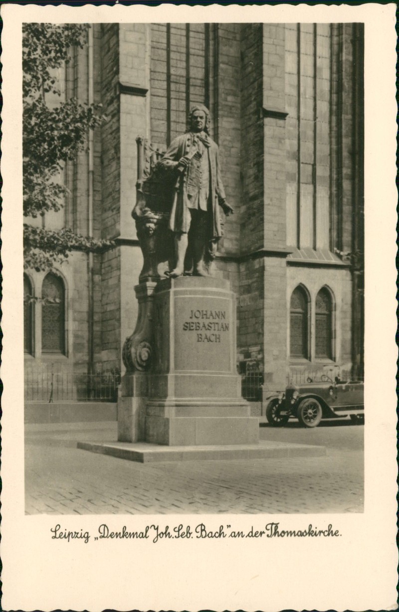 Ansichtskarte: Thomaskirche Bach-Denkmal Auto - Leipzig