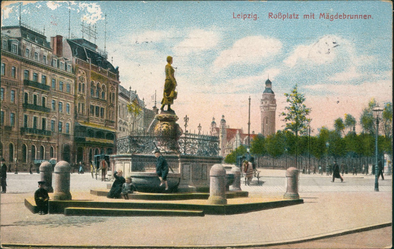 Ansichtskarte: Roßplatz mit Mägdebrunnen. - Leipzig