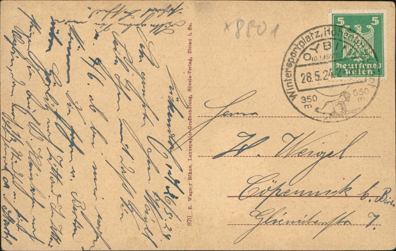 Ansichtskarte: Blick vom Hang auf die Stadt - Lückendorf-Oybin