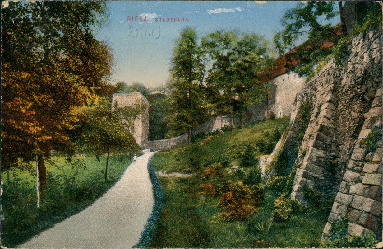 Ansichtskarte: Mauer - Stadtpark - Riesa