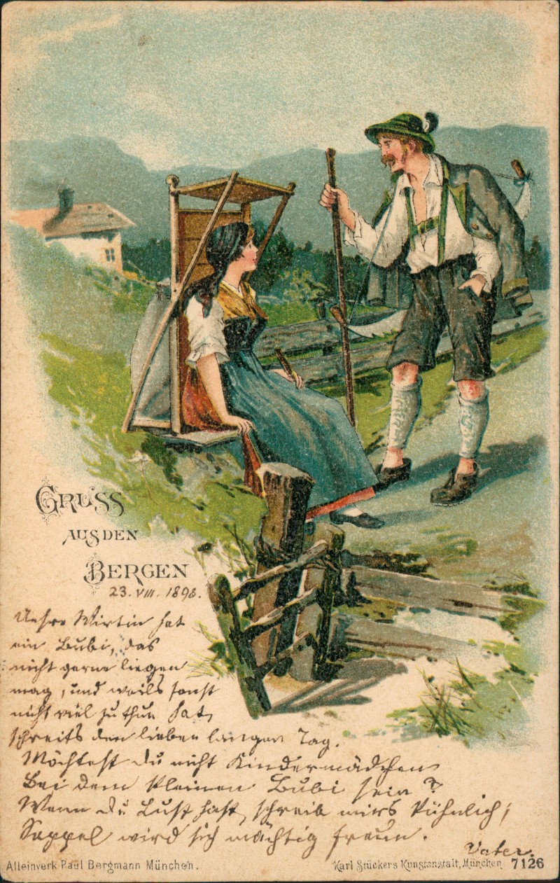 Ansichtskarte: Gruss aus den Bergen Mann und Frau
