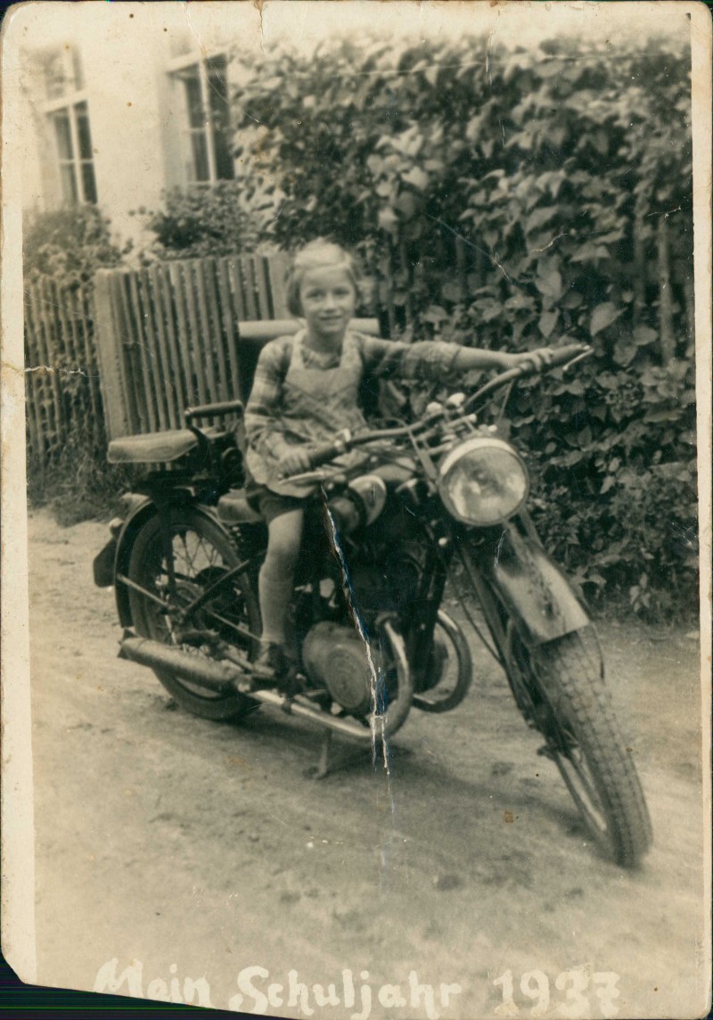 - Mädchen auf Motorrad Schuljahr