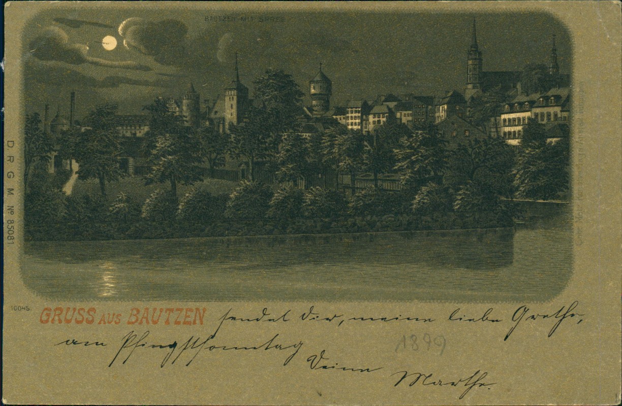 Ansichtskarte: Stadt mit Spree bei Mondschein Gruss aus... - Bautzen