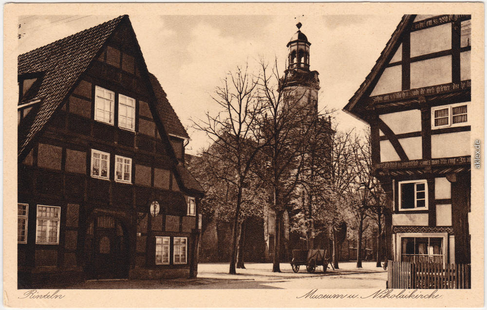 Ansichtskarte: Straßenpartie am Mueum und Nicolaikirche - Rinteln