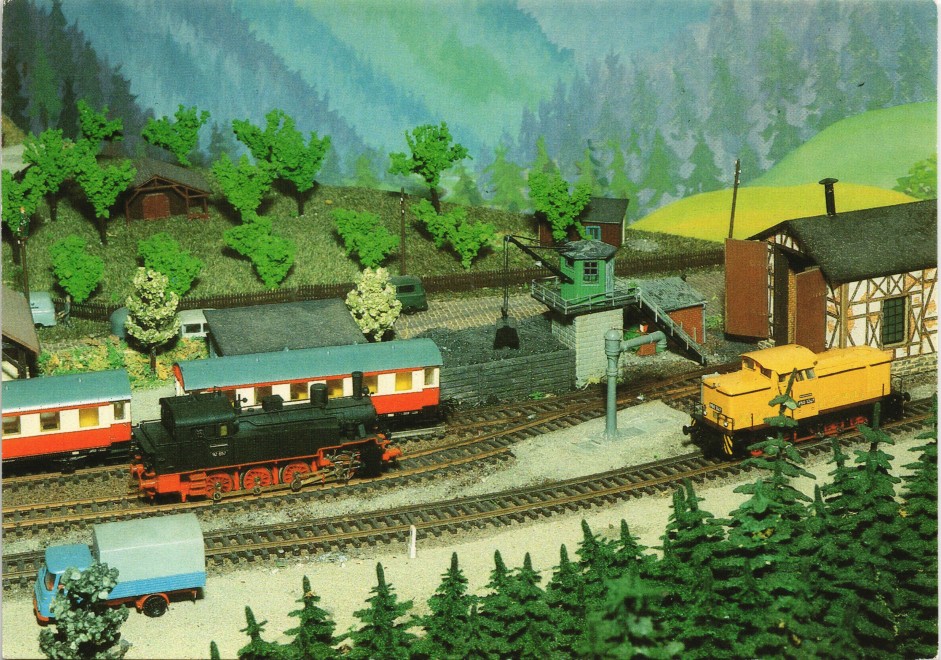 Foto Karte: Modelleisenbahn: Traktionswandel NebenBahnhof HO-Anlage AG 4/20 Saalfeld