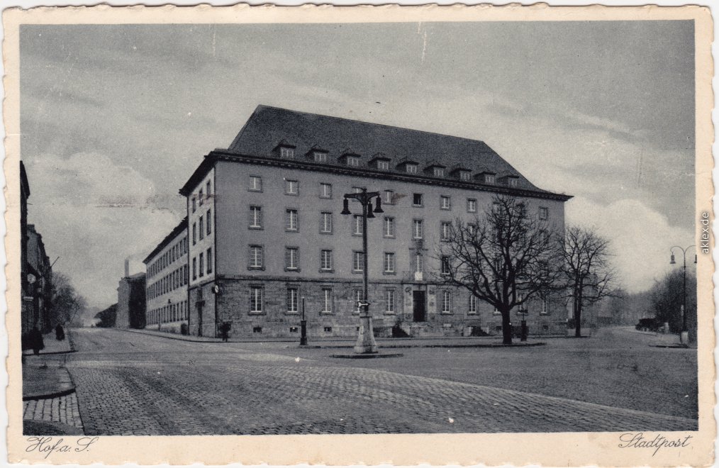 Ansichtskarte: Straßenpartie an der Stadtpost - Hof (Saale)