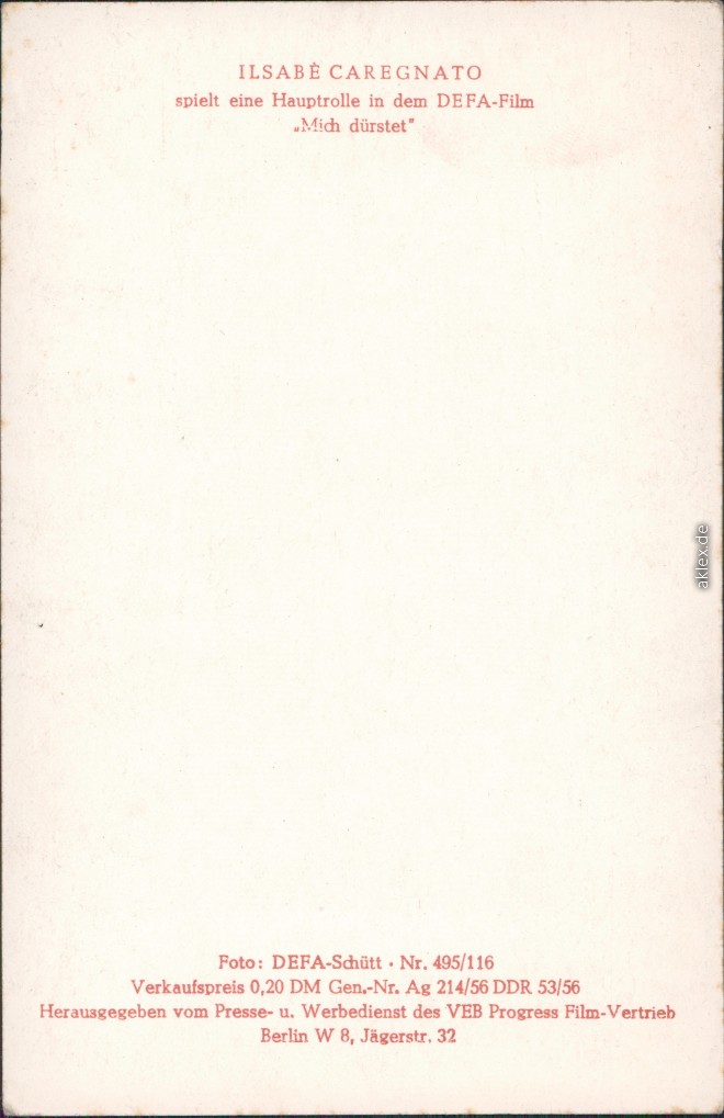 Ansichtskarte: Ilsabé Caregnato - sahen Sie u.a. in den DEFA-Filmen "Mich dürstet"