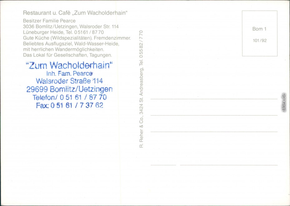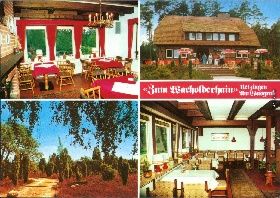 Ansichtskarte: Restaurant u. Café "Zum Wacholderhain" - Innen- und Außenansicht mit Gästebereich - Bomlitz
