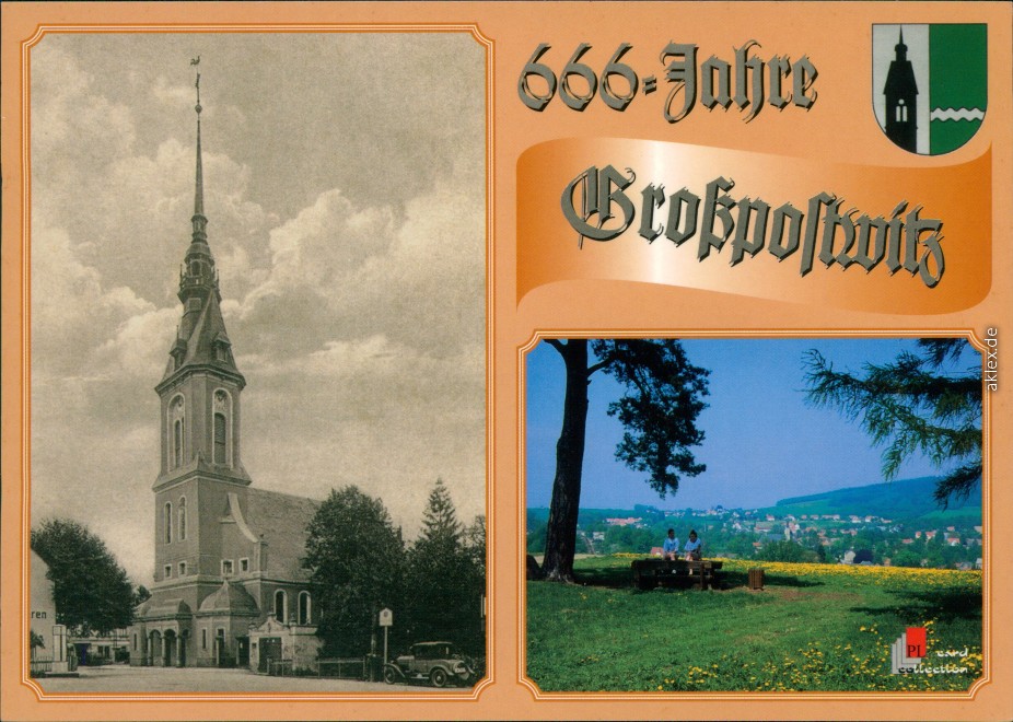 Ansichtskarte: Kirche, Panorama-Ansicht - Großpostwitz
