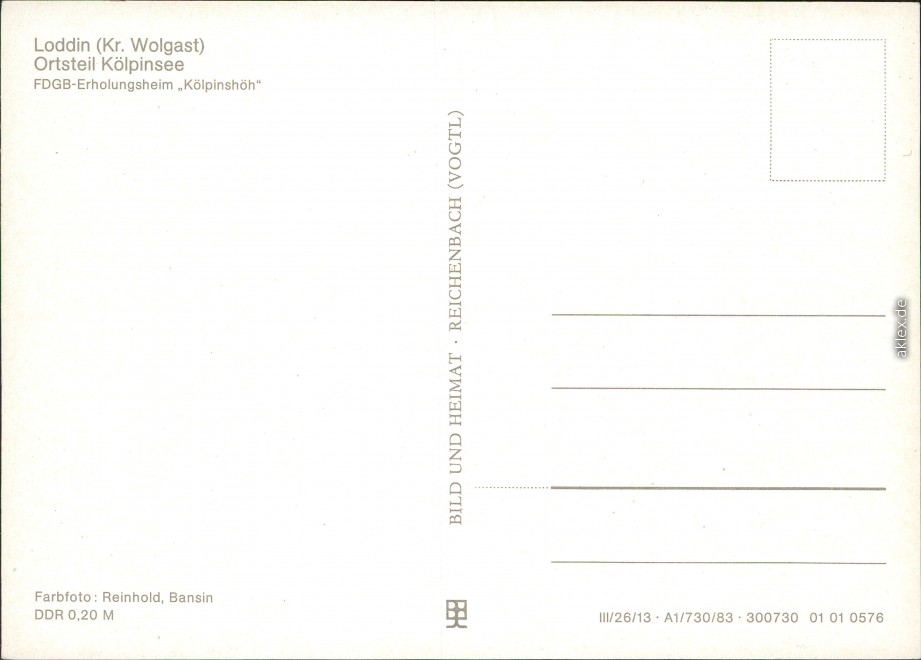 Ansichtskarte: FDGB-Erholungsheim "Kölpinshöh" - Kölpinsee (Usedom)-Loddin a. Usedom