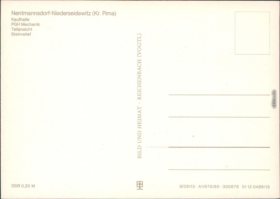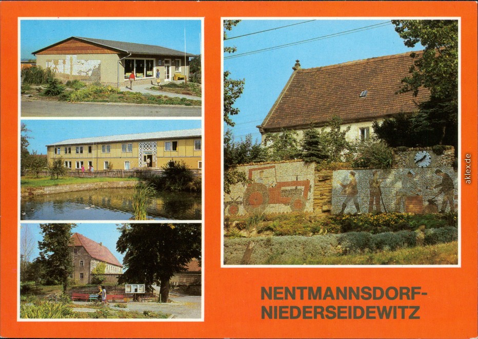 Ansichtskarte: Kaufhalle, PGH Mechanik, Teilansicht, Steinrelief - Niederseidewitz-Seidewitz-Bahretal (Sächs. Schweiz)