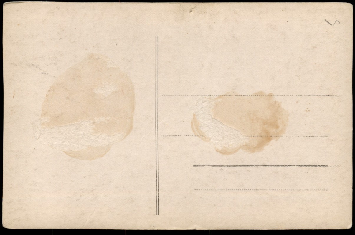 auf der Rückseite Kleberückstände und abgerissenes Papier