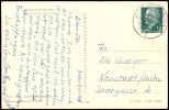 DDR Gruss-Postkarte mit Apotheke, Theater, Rathaus und Teilansicht