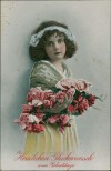 Kinder Künstlerkarte Mädchen mit Blumenkorb GOLD