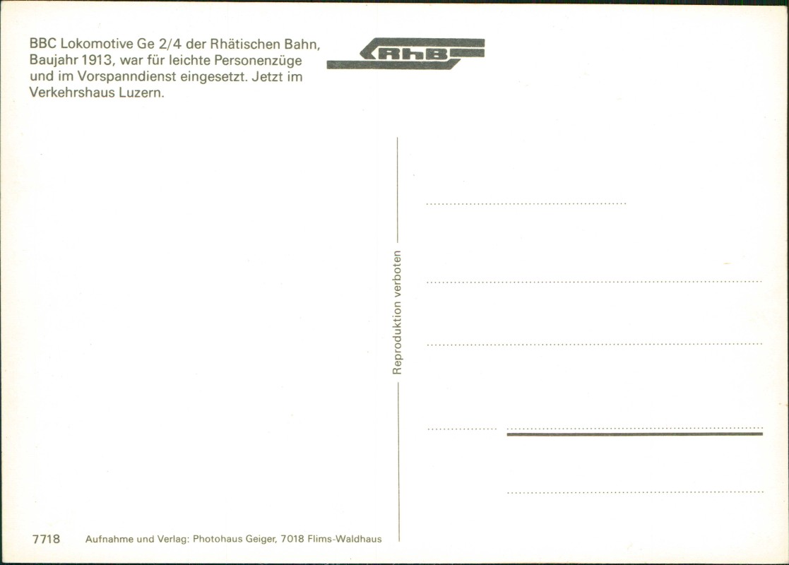 - Verkehr & Eisenbahn (Railway) BBC Lokomotive Ge 2/4 der Rhätischen Bahn