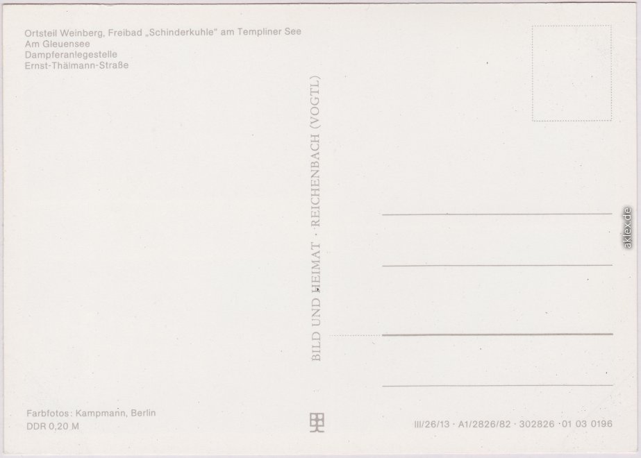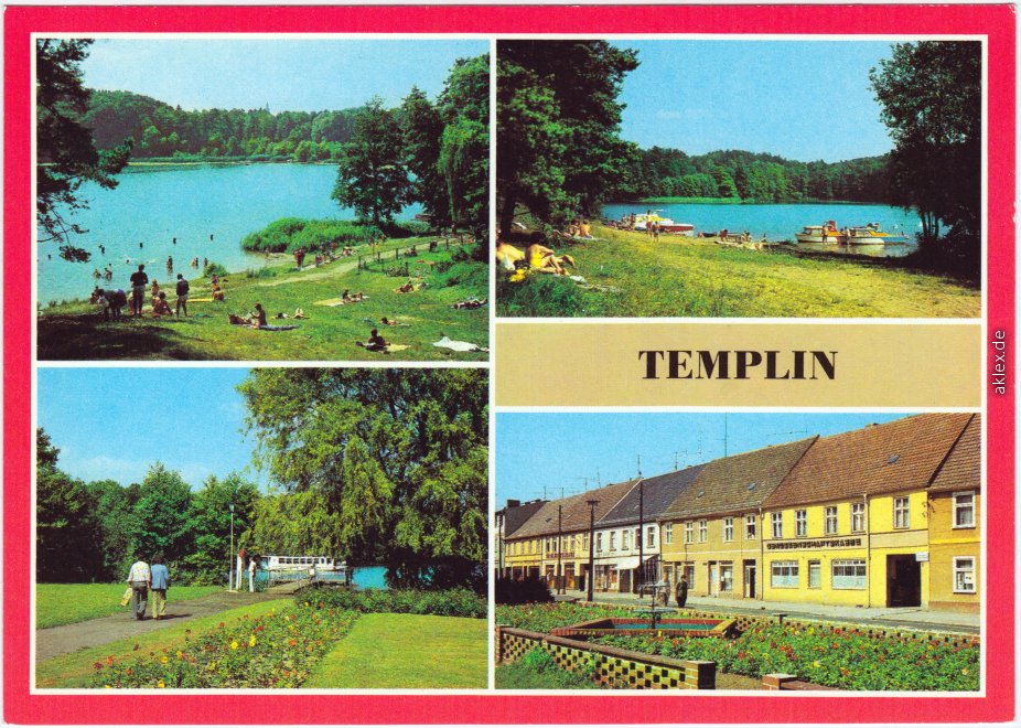Ansichtskarte: Ortsteil Weinberg, Freibad am Templiner See, Glauensee, Dampferanlegestelle, Ernst-Thälmann-Straße - Templin