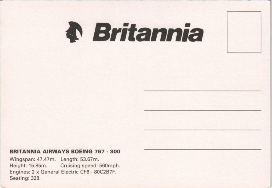 Ansichtskarte: Britannia Airways Boeing 767-300 Britannia Flugwesen - Flugzeuge