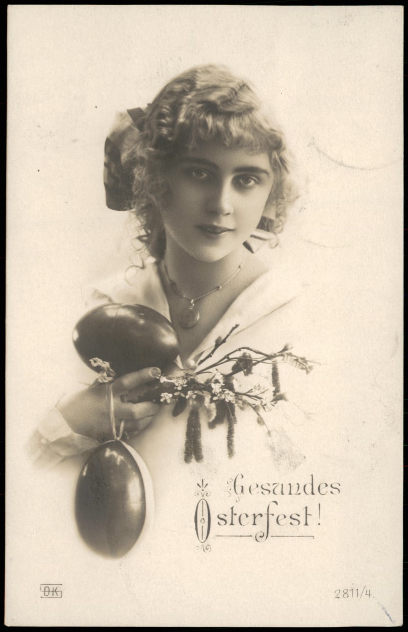 - Glückwunsch Ostern (Easter) Hübsche Frau mit Ostereiern