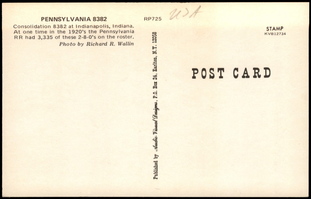 Foto Karte: PENNSYLVANIA Consolidation 8382 at Indianapolis, Indiana, Dampflokomotive