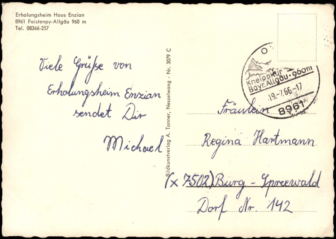 Foto Karte: Erholungsheim Haus Enzian 8961 Faistenpy-Allgäu 960 m - .Bayern