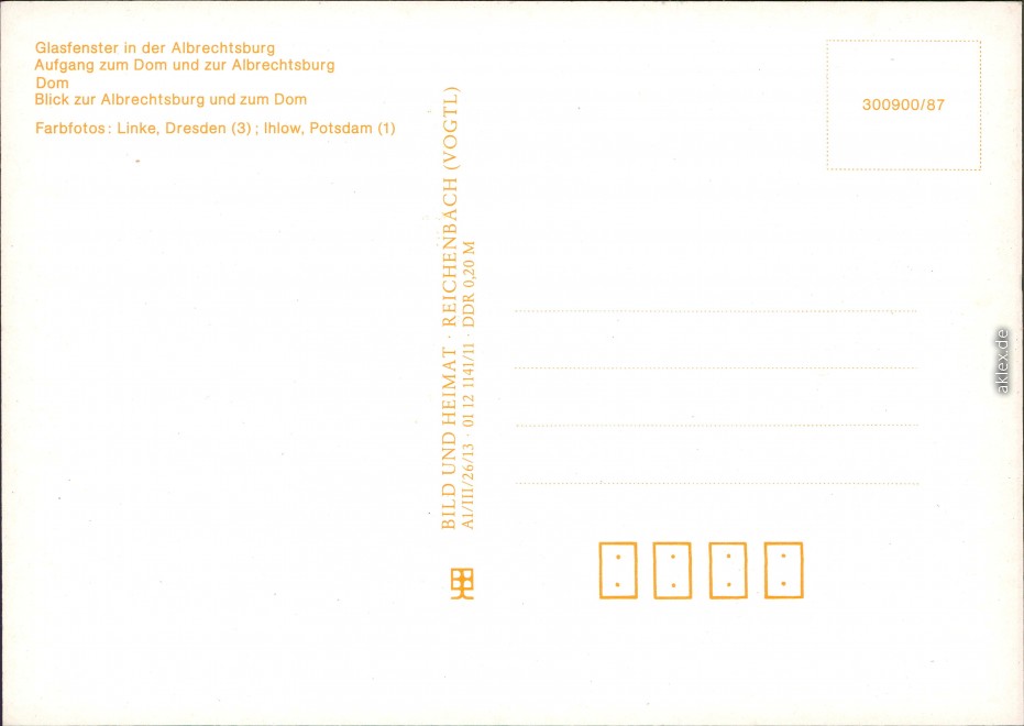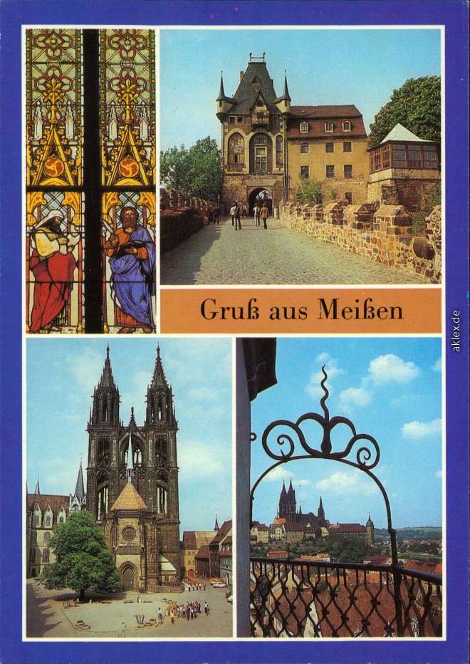 Ansichtskarte: Glasfenster in der Albrechtsburg, Aufgang zum Dom und zur Albrechtsburg, Dom, Blick zur Albrechtsburg und zum Dom - Meißen