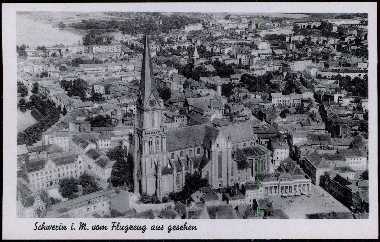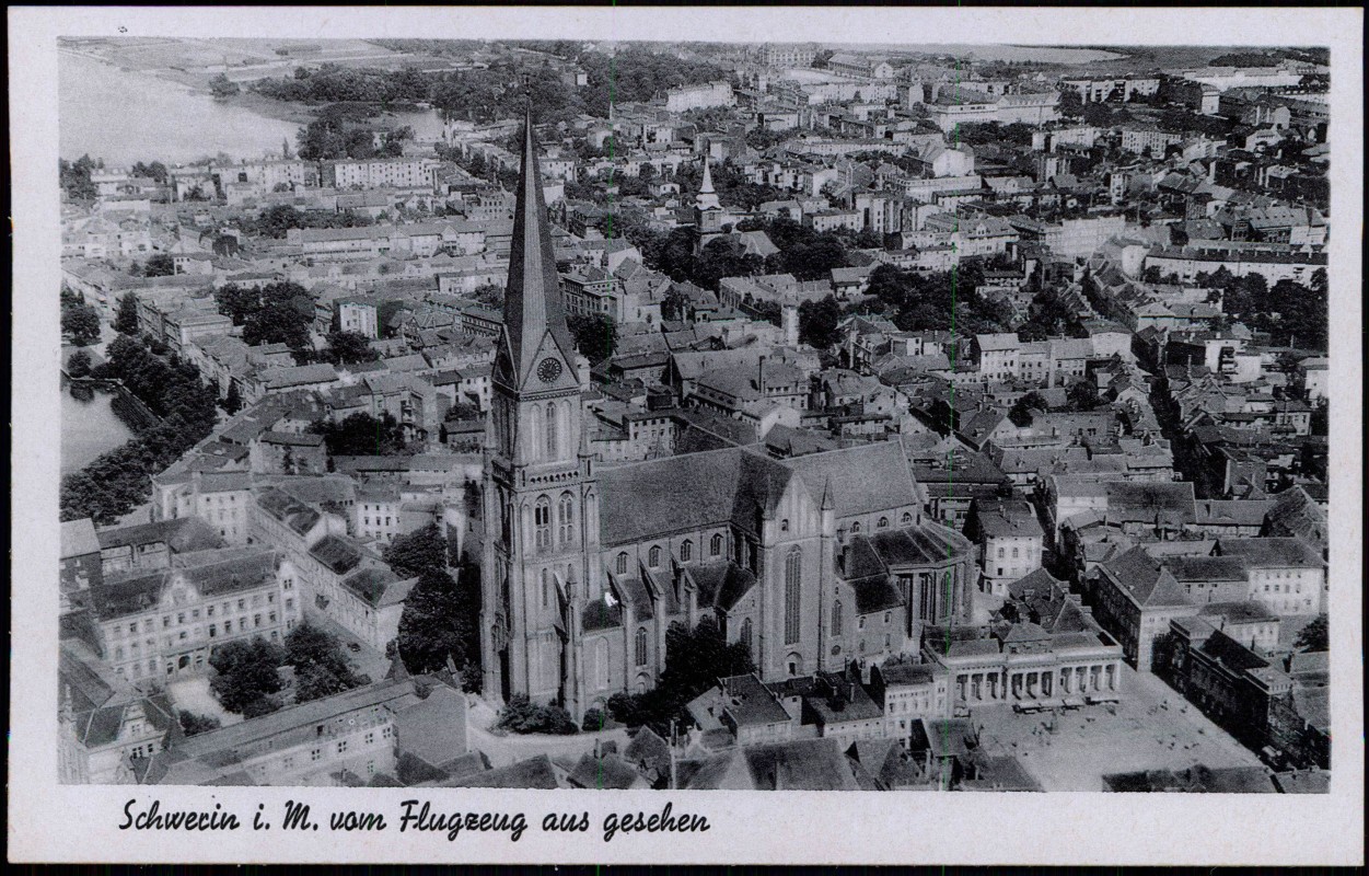 - Ansichtskarte Schwerin Flugzeug aus gesehen 1935