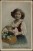 Ansichtskarte: Glückwunsch Geburtstag Birthday Mädchen mit Blumen (Gold-Ornamente)