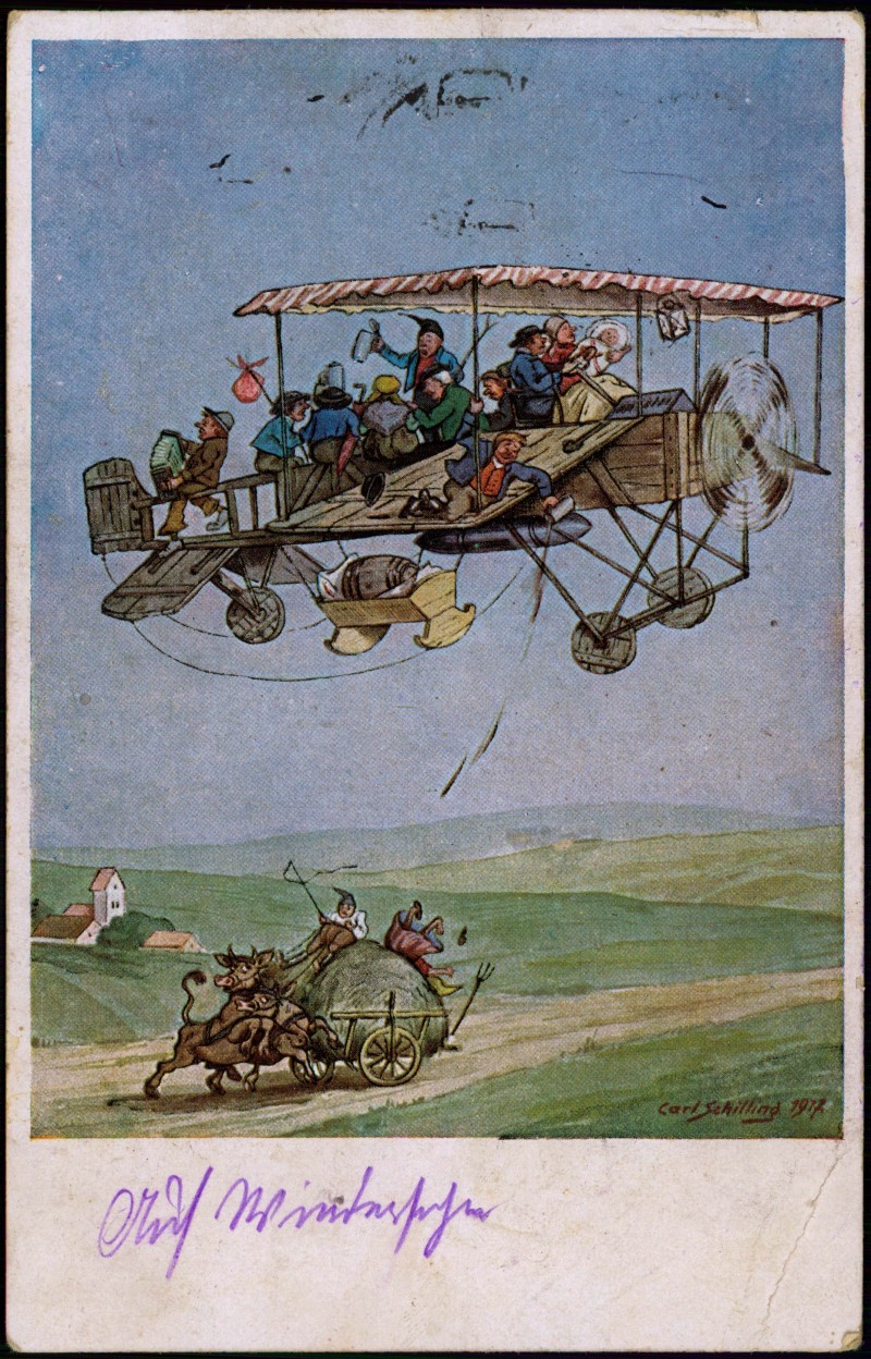 Ansichtskarte: Scherzkarte Feiergesellschaft Doppeldecker O diese Fliege