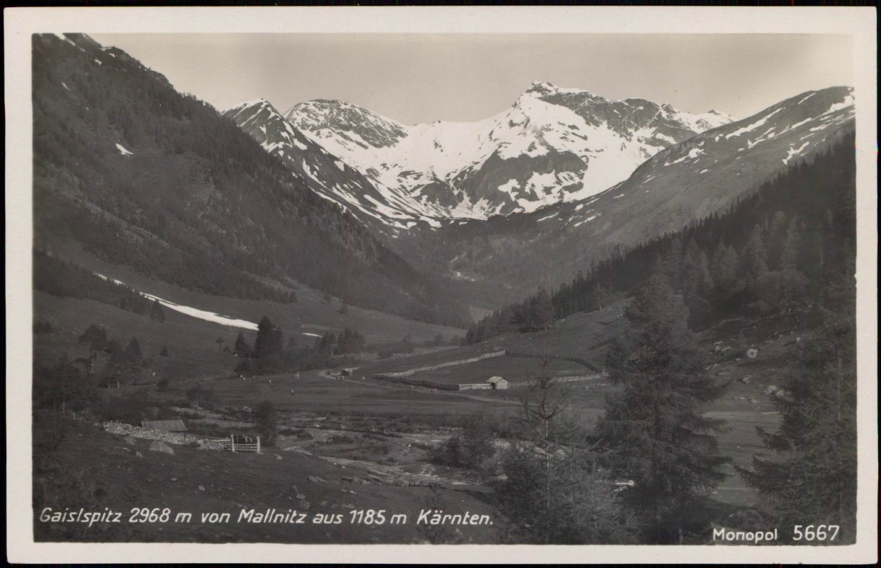 Foto Karte: Gaislspitz 2968 m von Mallnitz aus 1185 m Kärnten - Kärnten