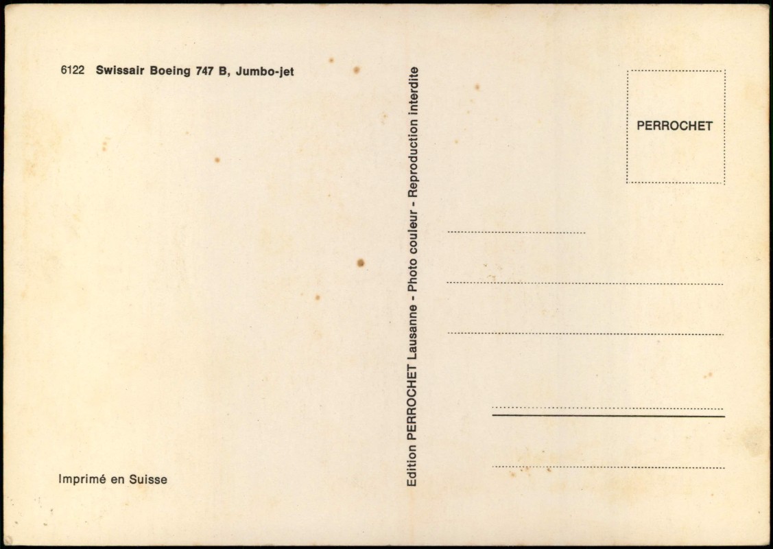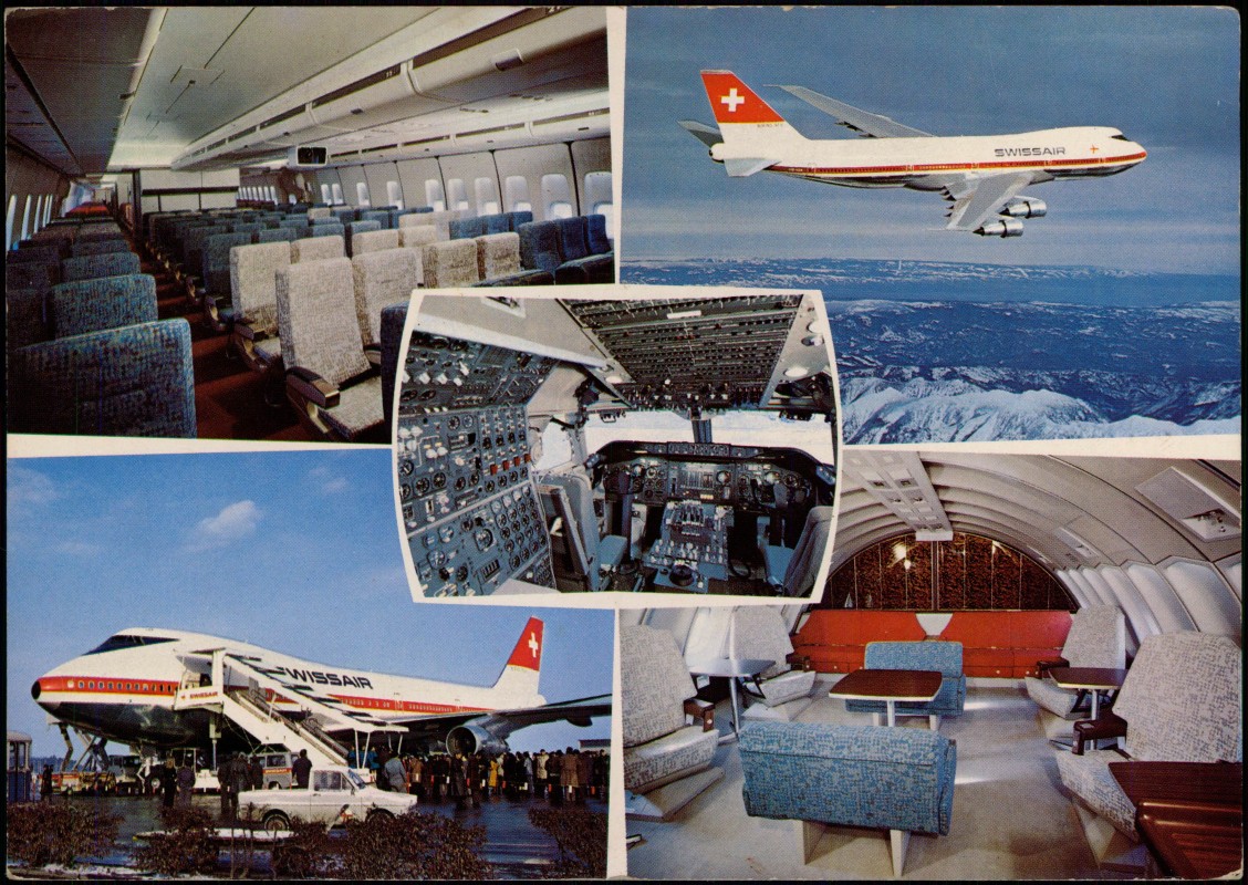 Foto Karte: Flugzeug Swissair Boeing 747 B, Jumbo-Jet u.a. Cockpit