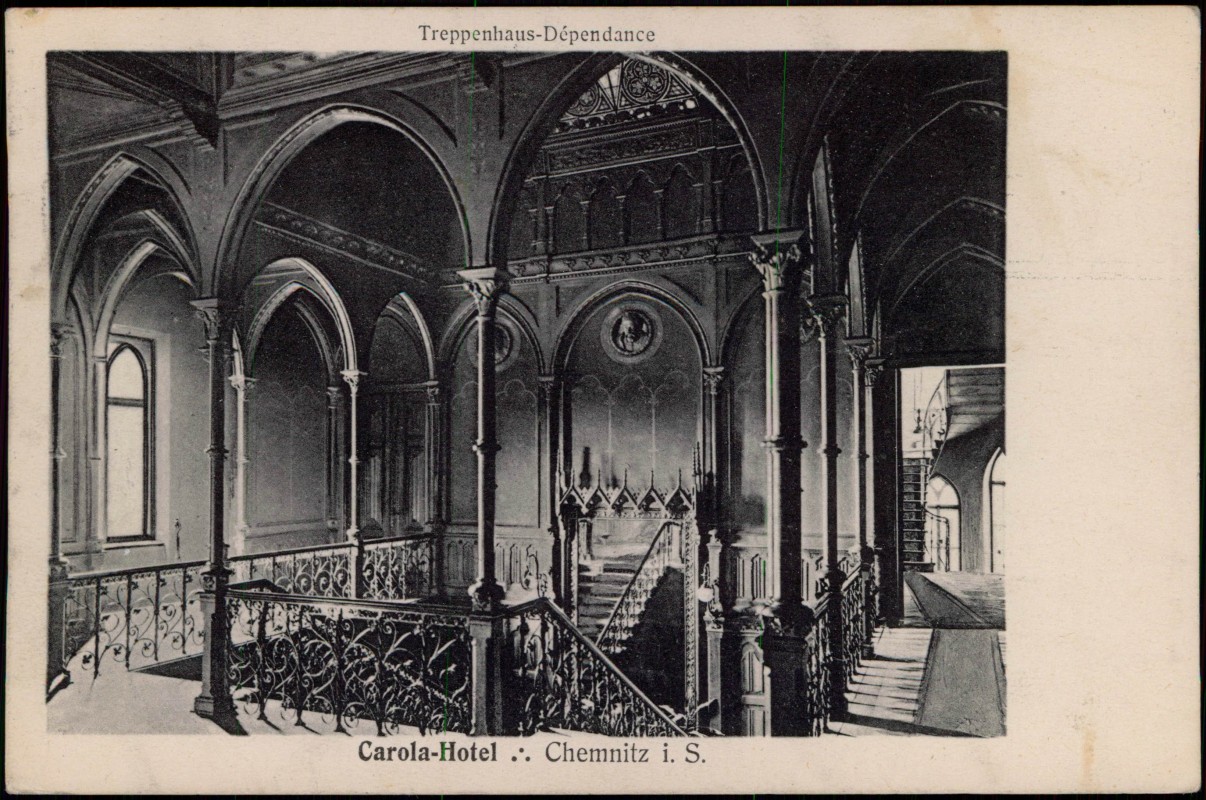 Ansichtskarte: Treppenhaus-Dépendance Carola-Hotel - Chemnitz