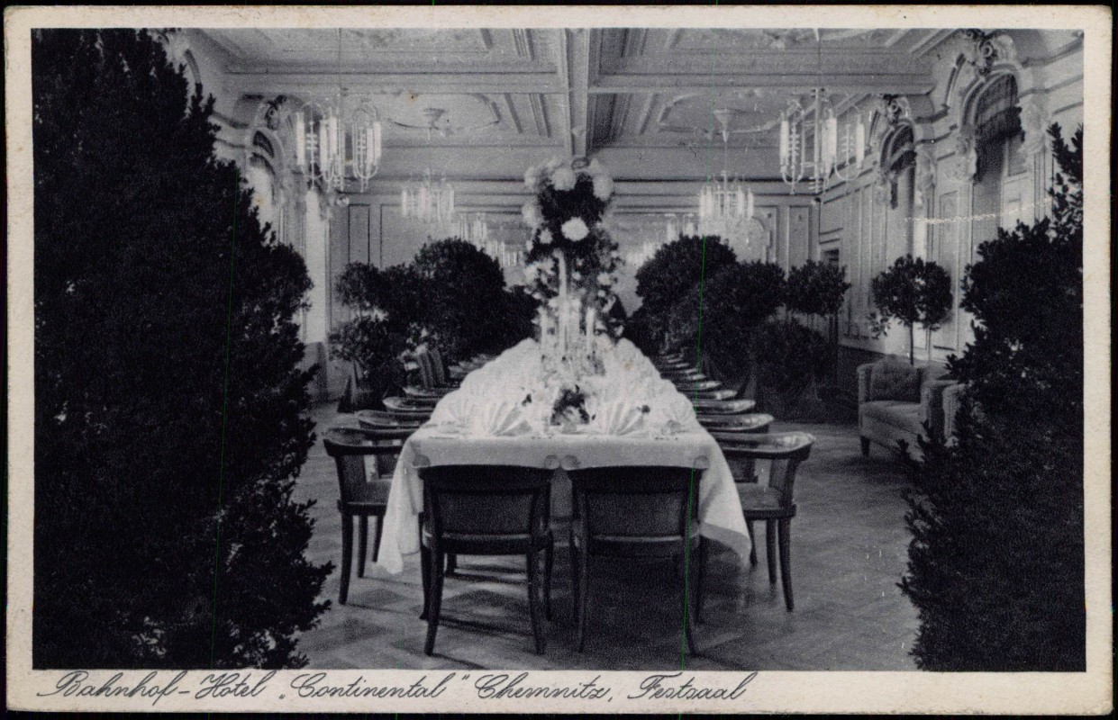 Ansichtskarte: Bahnhof-Hotel. Continenta Festsaal geschmückt - Chemnitz