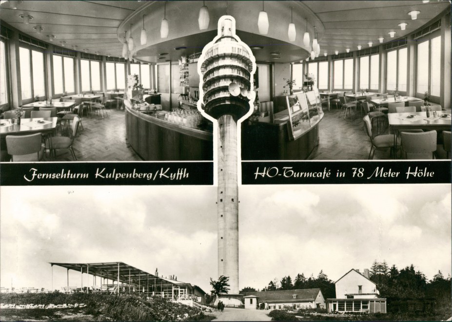 Ansichtskarte: Kulpenberg - Fernsehturm 4 Bild Gatstätte Innen - Steinthaleben-Kyffhäuserland