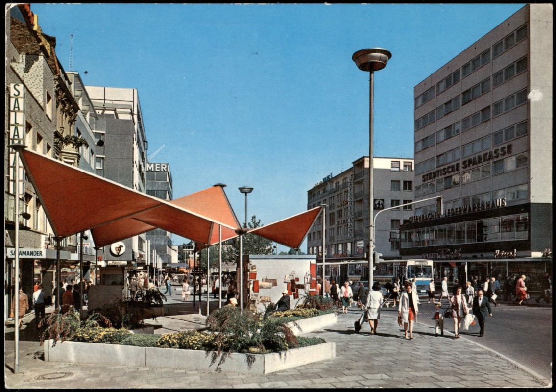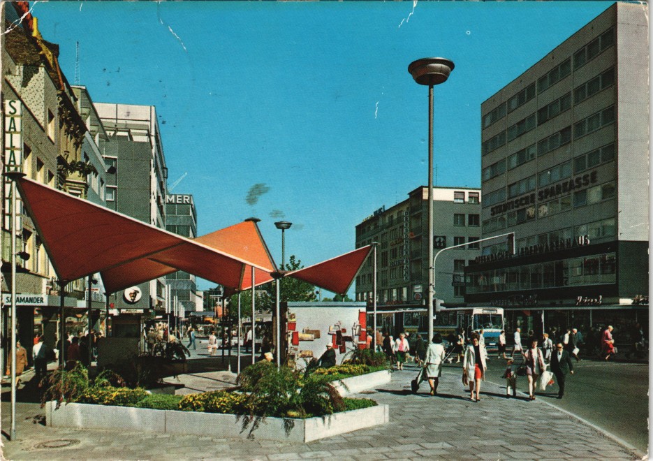 Foto Karte: Marktplatz, Leute beim Einkaufen, Salamander-Schuhgeschäft - Offenbach (Main)