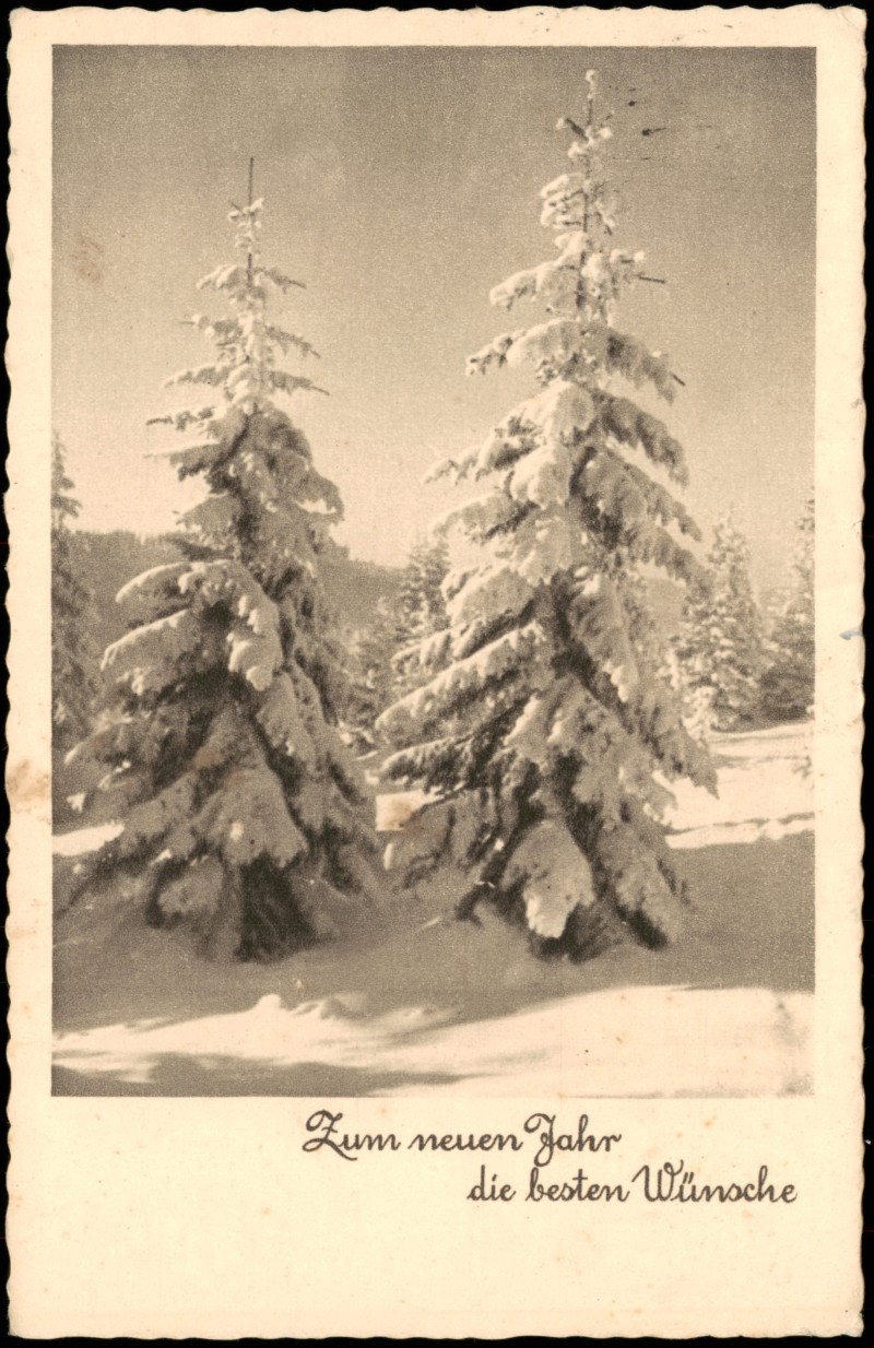 Ansichtskarte: Neujahr Sylvester New Year Tannen im Winter Schnee