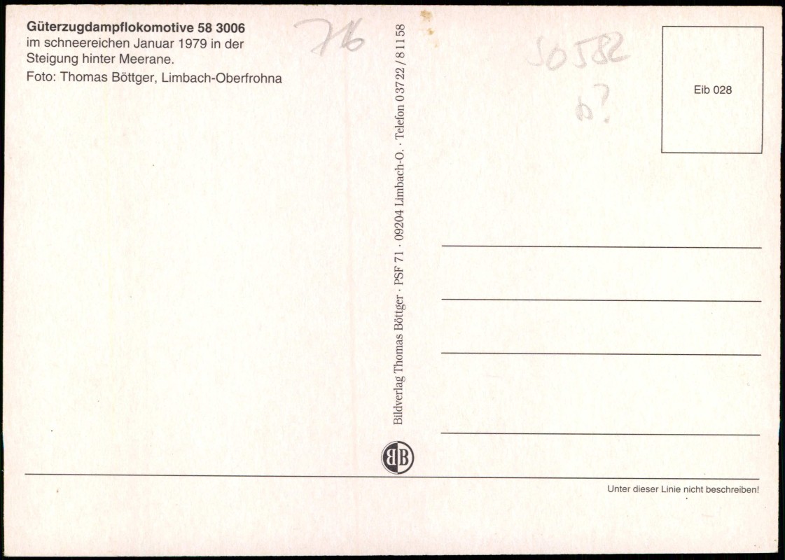 - Güterzugdampflokomotive 58 3006 Verkehr/KFZ - Eisenbahn/Zug/Lokomotive 1982
