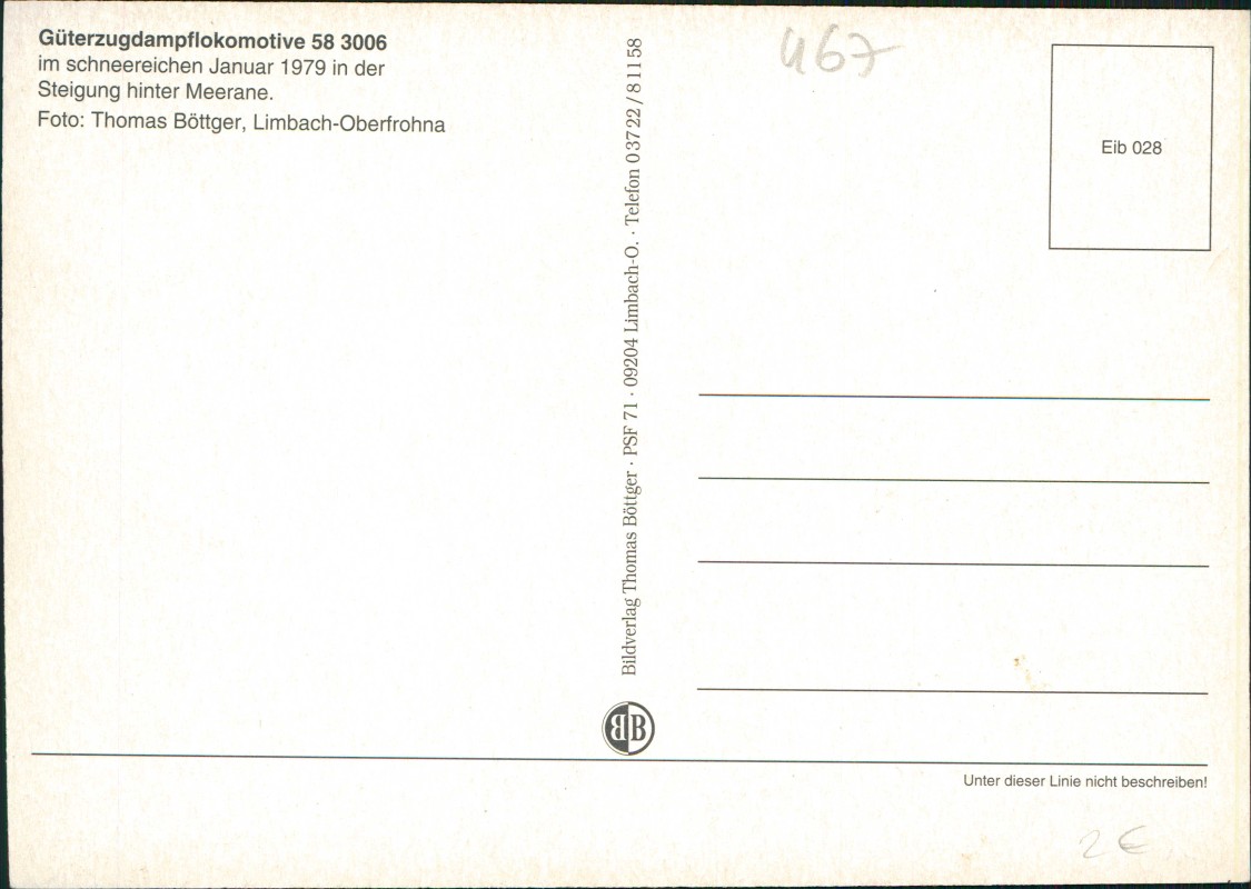 Ansichtskarte: Güterzugdampflokomotive 58 3006 Verkehr/KFZ - Eisenbahn/Zug/Lokomotive