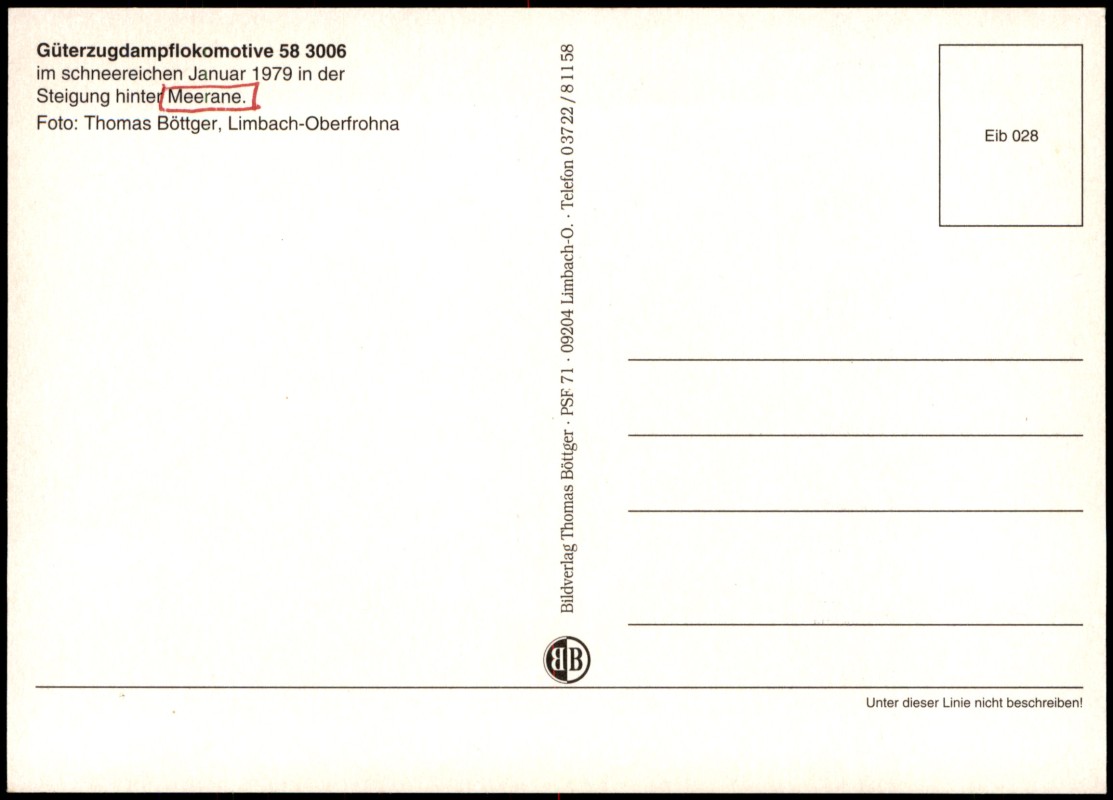 diese Karte können Sie hier kaufen:- Güterzugdampflokomotive 58 3006 Verkehr/KFZ - Eisenbahn/Zug/Lokomotive 1982