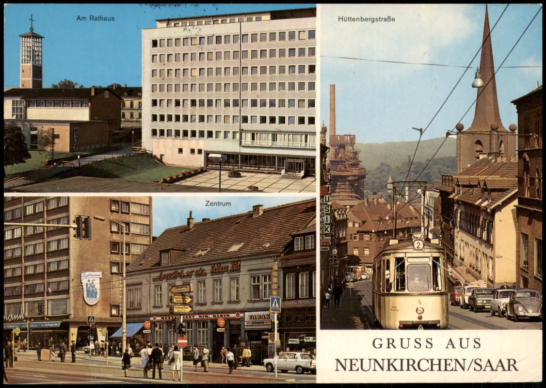 Foto Karte: Mehrbild-AK mit Zentrum, Rathaus Partie, Hüttenbergstraße - Neunkirchen (Saar)