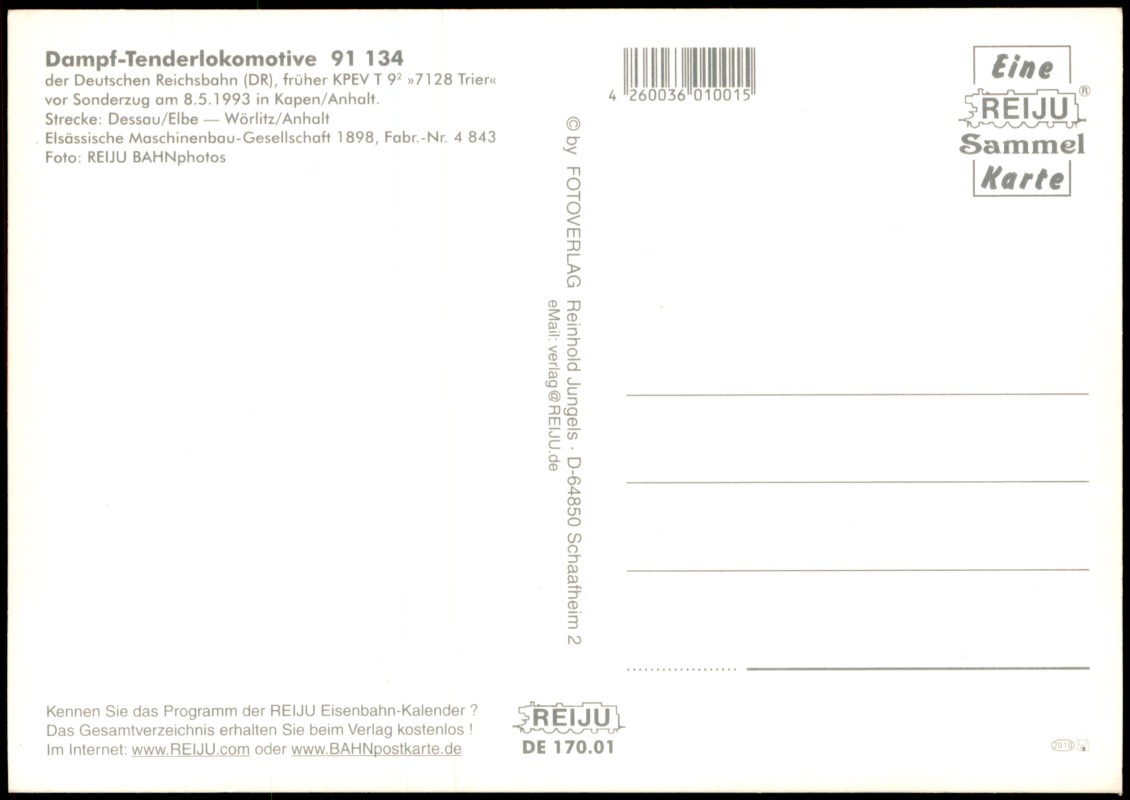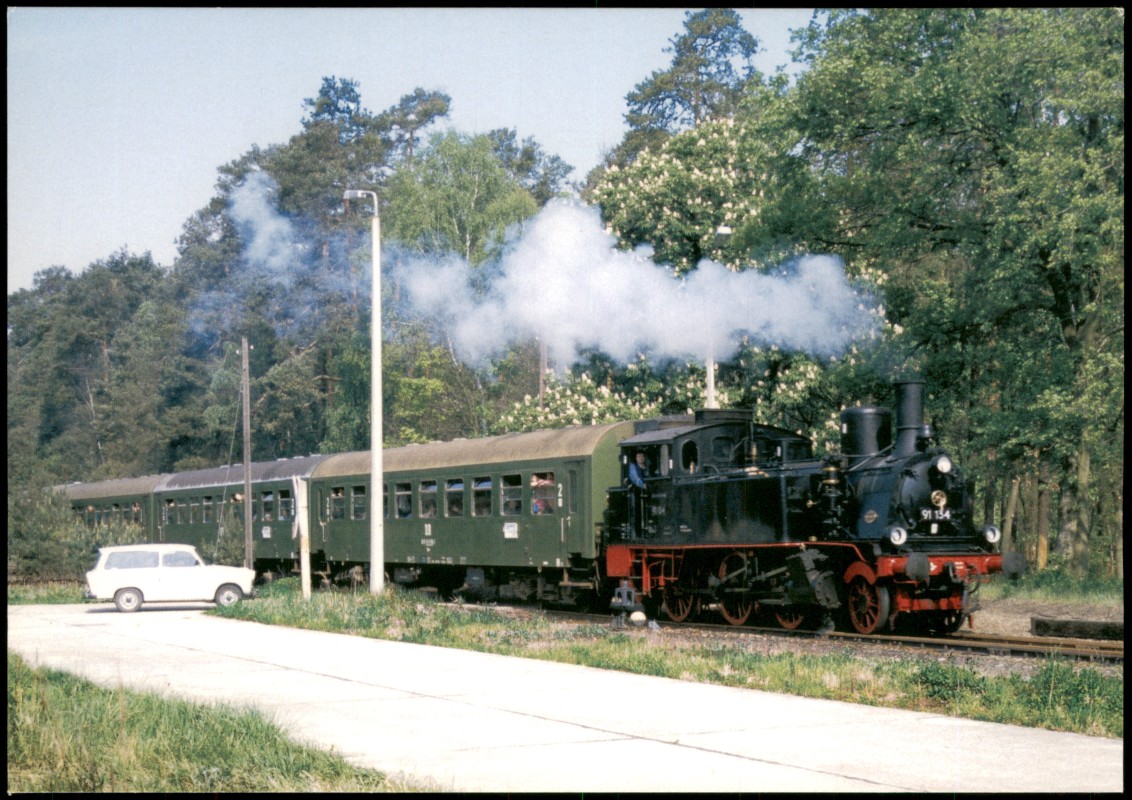 Foto Karte: Dampflokomotive Dampf-Tenderlokomotive 91 134 vor Sonderzug in Kapen/Anhalt