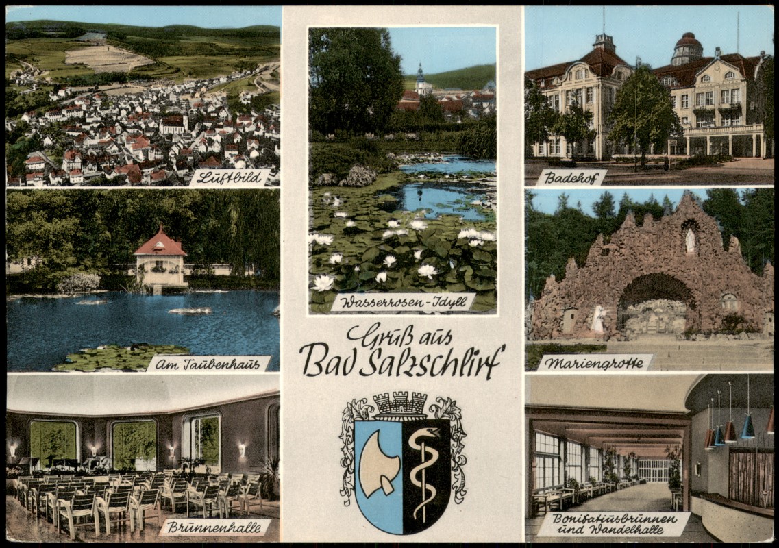 Ansichtskarte: MB: Wandelhalle Luftbild Brunnenhalle - Bad Salzschlirf