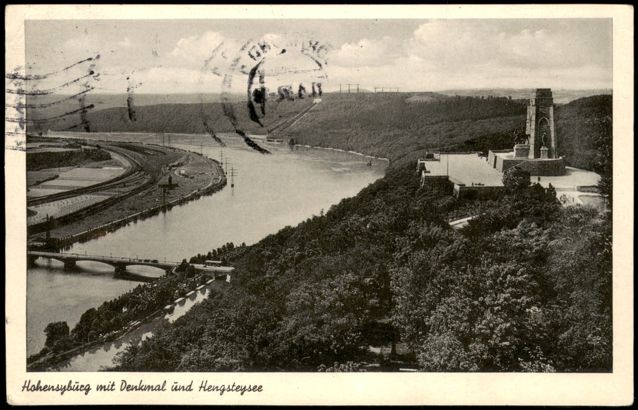 Ansichtskarte: Hohensyburg mit Denkmal und Hengsteysee - Syburg-Dortmund